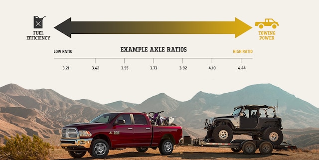 Finding the ideal axle ratio can be a compromise. For a higher axle ratio, this gives you more towing power and quicker acceleration. If you choose a lower ratio, it gives you better engine efficiency and quieter vehicle operation. There is a variety of axles RAM trucks come in. You can talk to our Lima dealership's sale staff to understand which one is more important for the Delphos area.