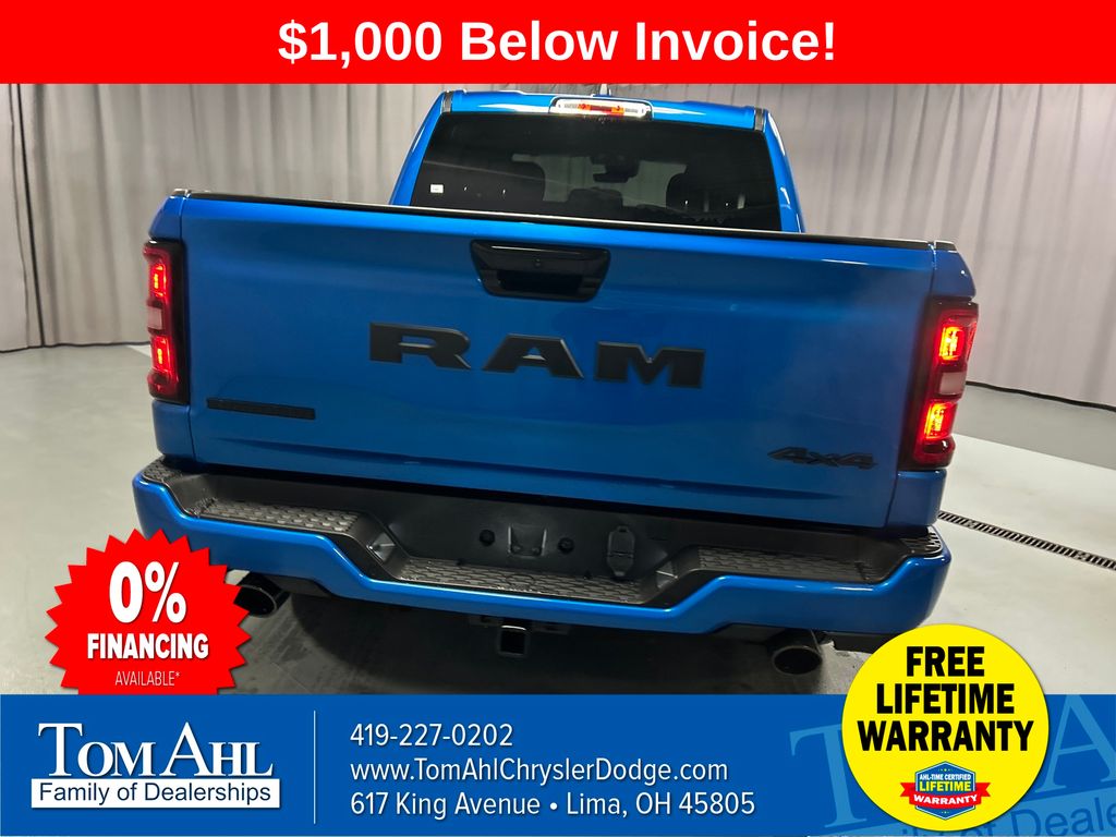 INCLUDES LIFETIME POWERTRAIN WARRANTY, Accent Color Door Handles, Accent Color Premium Power Mirrors, Accent Color Tailgate Handle, Anti-Spin Differential Rear Axle, Auto Power-Folding Mirrors, Auto-Dimming Exterior Driver Mirror, Black Exterior Truck Badging, Black Headlamp Bezels, Black Interior Accents, Black Painted Exterior Mirrors Caps, Black Tail Lamp Bezels, Body Color Front Bumper, Body Color Rear Bumper with Step Pads, Convex Wide-Angle Exterior Mirror Insert, Dual Exhaust with Black Tips, Exterior Mirrors Courtesy Lamps, Exterior Mirrors with Heating Element, Exterior Mirrors with Supplemental Signals, Grille Black Surround Black Mesh, Night Edition, Quick Order Package 27Z Big Horn, RAM Grille Badge - Black, Wheels: 20" x 9.0" Aluminum Painted Clad. Price includes: $3500 - 2026 National Retail Bonus Cash . Exp. 03/31/2026