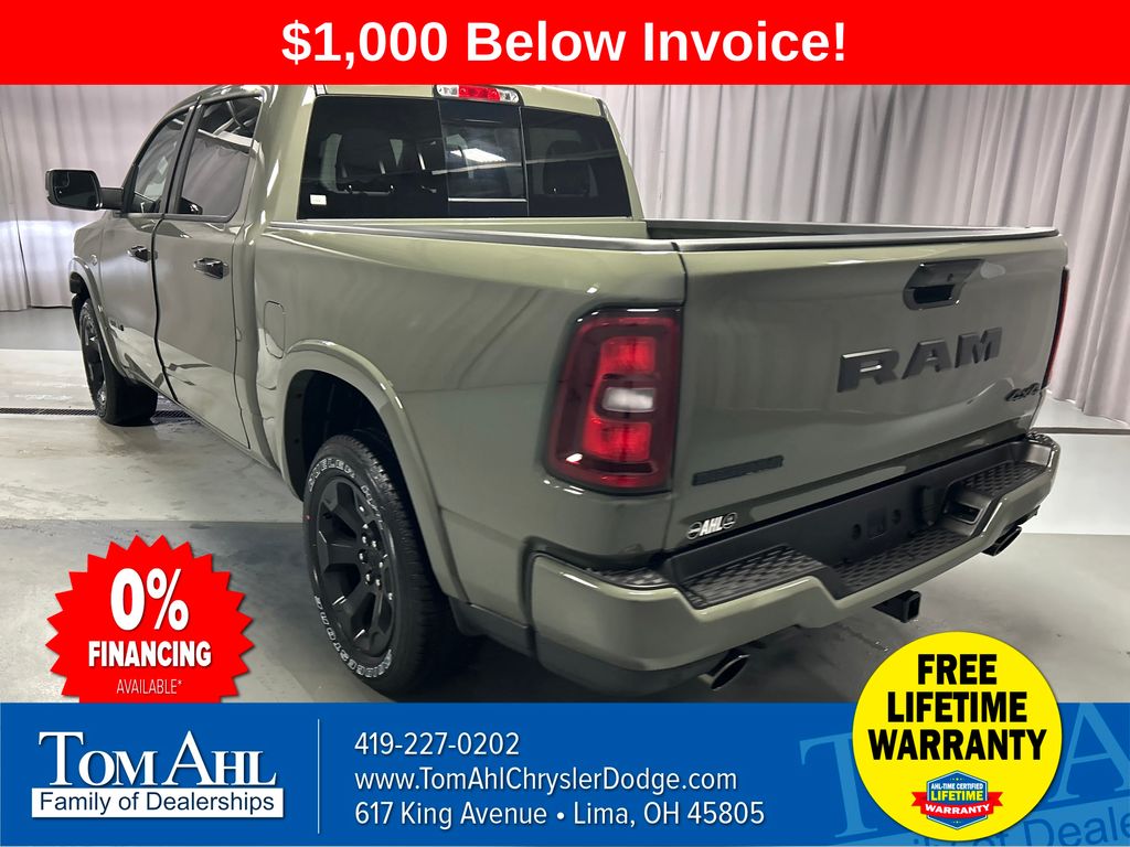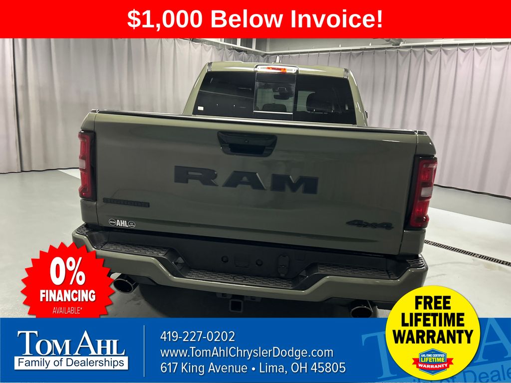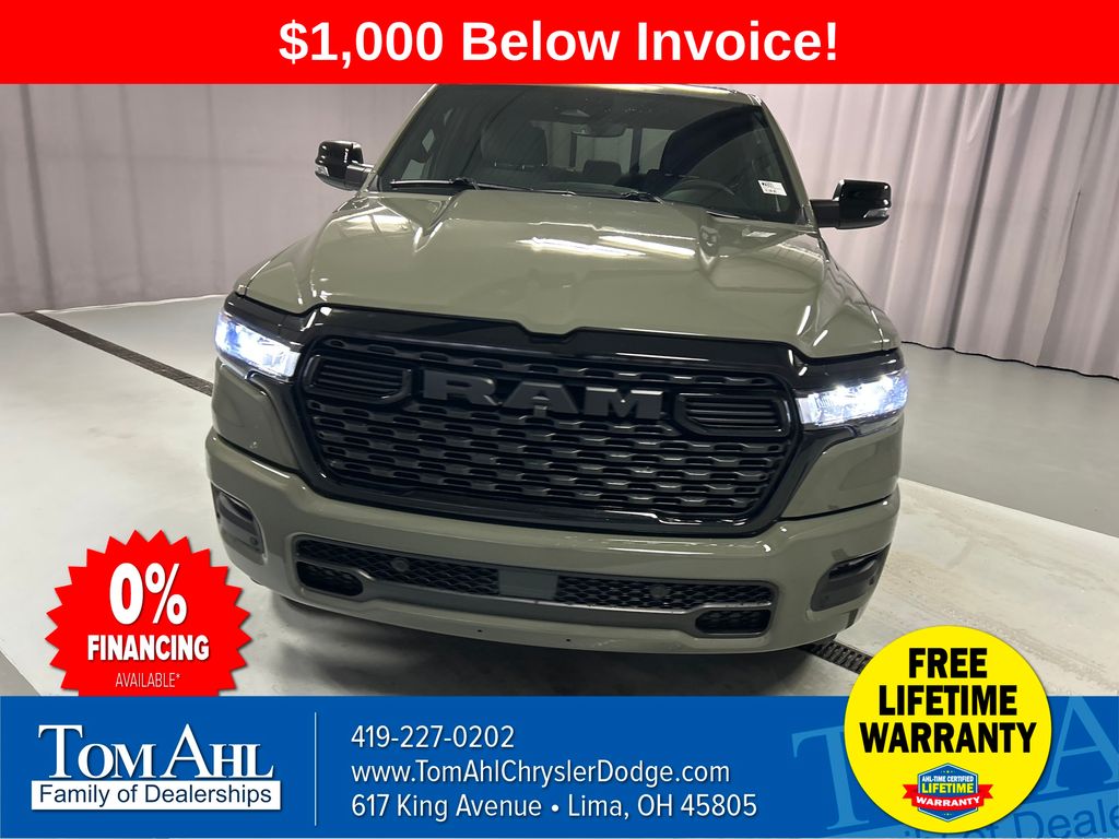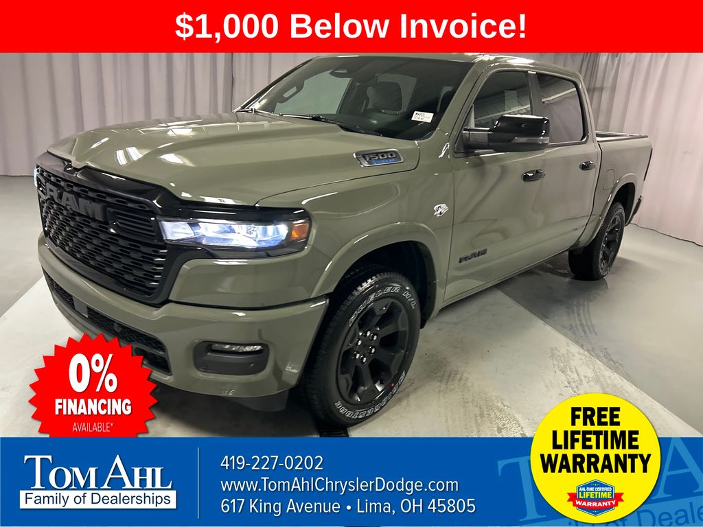 INCLUDES LIFETIME POWERTRAIN WARRANTY, 115V Auxiliary Power Outlet, 115V Auxiliary Rear Power Outlet, 12" Touchscreen Display, 2nd Row in Floor Storage Bins, 3 Rear Seat Head Restraints, 4 Way Front Headrests, 400W Inverter, 4G LTE Wi-Fi Hot Spot, 9 Amplified Speakers with Subwoofer, Accent Color Door Handles, Accent Color Premium Power Mirrors, Accent Color Tailgate Handle, Air Conditioning ATC with Dual Zone Control, Anti-Spin Differential Rear Axle, Apple CarPlay, Auto Power-Folding Mirrors, Auto-Dimming Exterior Driver Mirror, Auto-Dimming Rear-View Mirror, Big Horn Level 2 Equipment Group, Black Exterior Mirrors, Black Exterior Truck Badging, Black Headlamp Bezels, Black Interior Accents, Black Painted Exterior Mirrors Caps, Black Premium Power Mirrors, Black Tail Lamp Bezels, Body Color Fender Flares, Body Color Front Bumper, Body Color Rear Bumper with Step Pads, Bucket Seats, Center Console Parts Module, Cluster 7.0" TFT Color Display, Configurable Drive Mode, Connected Travel and Traffic Services, Connectivity - US/Canada, Convex Wide-Angle Exterior Mirror Insert, Deluxe Cloth Bucket Seats, Disassociated Touchscreen Display, Dual Exhaust with Black Tips, Exterior Mirrors Courtesy Lamps, Exterior Mirrors with Heating Element, Exterior Mirrors with Supplemental Signals, Front Seat Back Map Pockets, Full Length Floor Console, Global Telematics Box Module, Glove Box Lamp, Google Android Auto, GPS Antenna Input, GPS Navigation, Grille Black Surround Black Mesh, HD Radio, Heated Front Seats, Heated Steering Wheel, Integrated Center Stack Radio, Integrated Voice Command with Bluetooth, Leather Wrapped Steering Wheel, LED Dome Lamp with on/Off Switch, LED Footwell Lighting, Manual Adjust 4-Way Front Passenger Seat, Media Hub with 2 Charge Only USBs, Night Edition, Overhead LED Lamps, Power 2-Way Driver Lumbar Adjust, Power Adjust 8-Way Driver Seat, Power Adjustable Pedals, Premium Overhead Console, Quick Order Package 27Z Big Horn, Radio: Uconnect 5 Navigation with 12.0" Display, RAM Grille Badge - Black, Rear 60/40 Folding Seat, Rear Center Armrest, Rear Power Sliding Window, Rear Window Defroster, Remote Tailgate Release, Security Alarm, SiriusXM Radio Service, SiriusXM with 360L, Steering Wheel Mounted Audio Controls, Sun Visors with Illuminated Vanity Mirrors, Universal Garage Door Opener, USB Price includes: $3500 - 2026 National Retail Bonus Cash . Exp