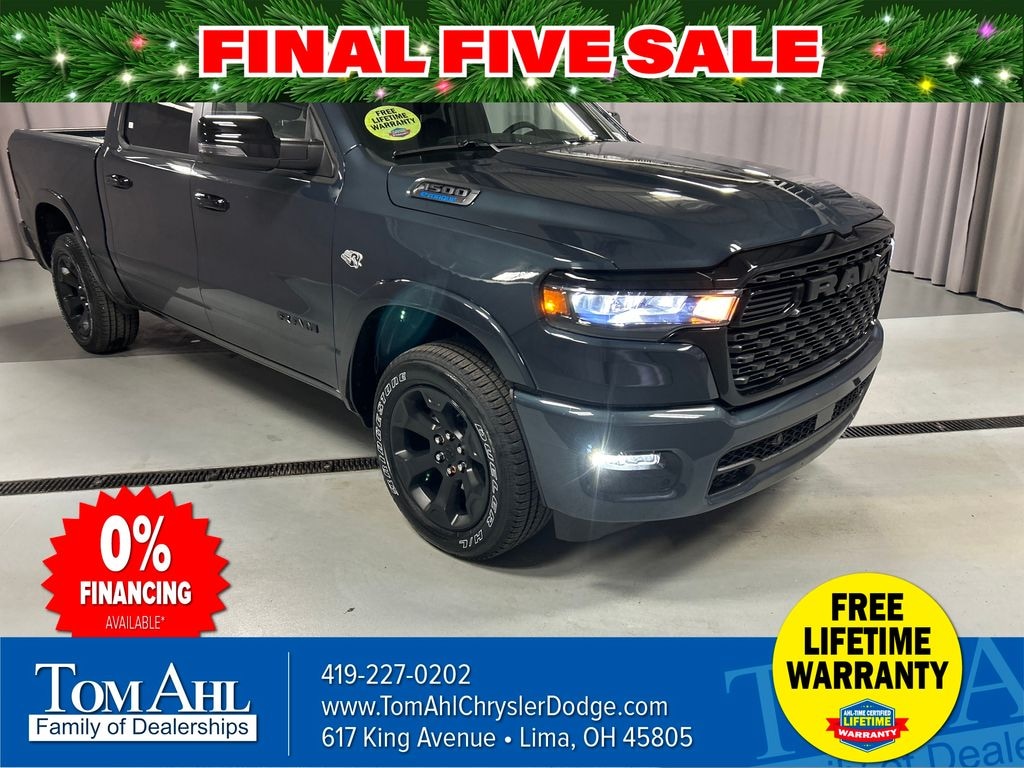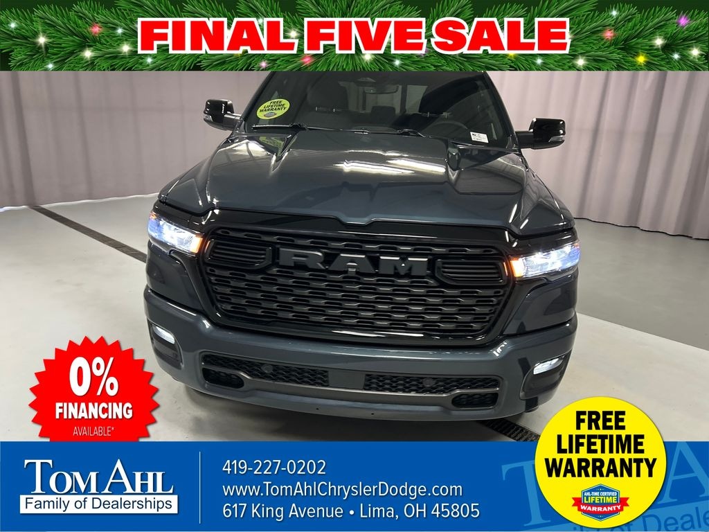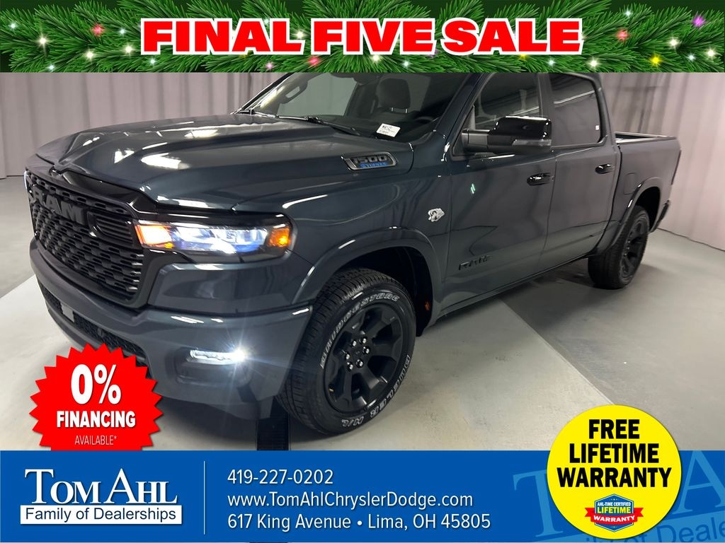INCLUDES LIFETIME POWERTRAIN WARRANTY, 115V Auxiliary Power Outlet, 3 Rear Seat Head Restraints, 4 Way Front Headrests, 400W Inverter, Accent Color Door Handles, Accent Color Premium Power Mirrors, Accent Color Tailgate Handle, Anti-Spin Differential Rear Axle, Auto Power-Folding Mirrors, Auto-Dimming Exterior Driver Mirror, Auto-Dimming Rear-View Mirror, Big Horn Level 1 Equipment Group, Black Exterior Mirrors, Black Exterior Truck Badging, Black Headlamp Bezels, Black Interior Accents, Black Painted Exterior Mirrors Caps, Black Premium Power Mirrors, Black Tail Lamp Bezels, Body Color Fender Flares, Body Color Front Bumper, Bucket Seats, Center Console Parts Module, Convex Wide-Angle Exterior Mirror Insert, Deluxe Cloth Bucket Seats, Exterior Mirrors Courtesy Lamps, Front Seat Back Map Pockets, Full Length Floor Console, Glove Box Lamp, Grille Black Surround Black Mesh, Heated Front Seats, Heated Steering Wheel, Leather Wrapped Steering Wheel, Manual Adjust 4-Way Front Passenger Seat, Night Edition, Power 2-Way Driver Lumbar Adjust, Power Adjust 8-Way Driver Seat, Power Adjustable Pedals, Quick Order Package 27Z Big Horn, RAM Grille Badge - Black, Rear 60/40 Folding Seat, Rear Center Armrest, Rear Power Sliding Window, Rear Window Defroster, SiriusXM Radio Service, SiriusXM Satellite Radio, Steering Wheel Mounted Audio Controls, Universal Garage Door Opener, Wheels: 20" x 9.0" Aluminum Painted Clad. Price includes: $3500 - 2026 National Retail Consumer Cash . Exp. 01/05/2026