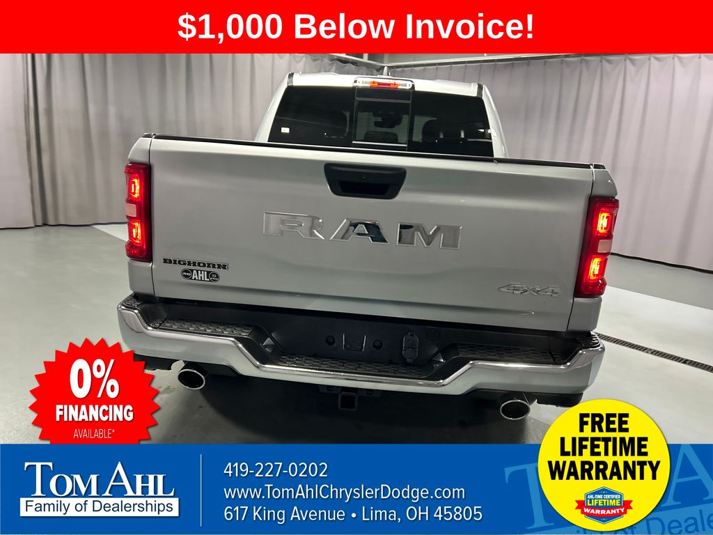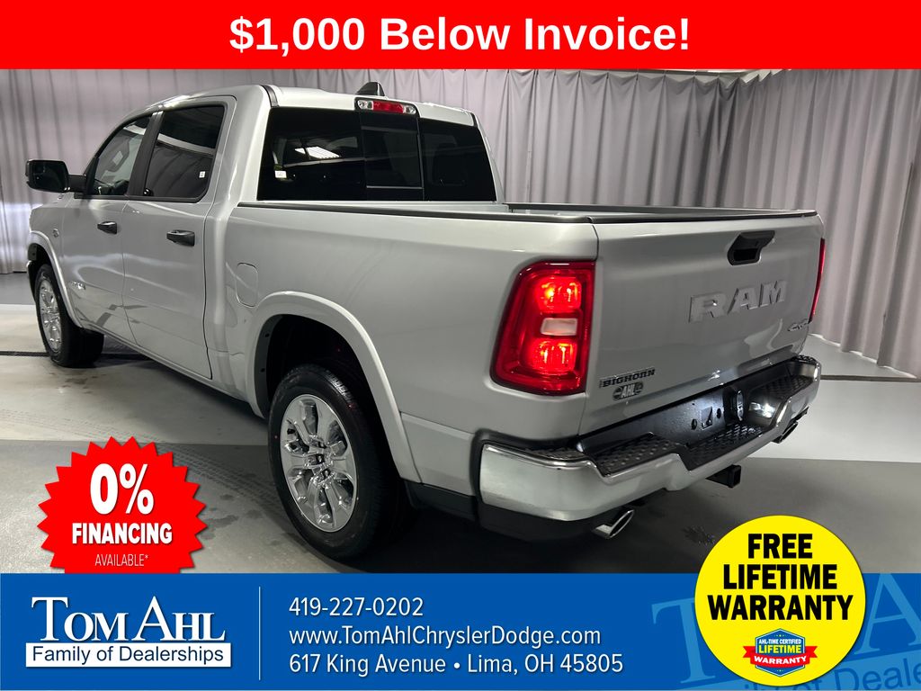 INCLUDES LIFETIME POWERTRAIN WARRANTY, 115V Auxiliary Power Outlet, 2nd Row in Floor Storage Bins, 3 Rear Seat Head Restraints, 4 Way Front Headrests, 400W Inverter, Auto Power-Folding Mirrors, Auto-Dimming Exterior Driver Mirror, Auto-Dimming Rear-View Mirror, Big Horn Level 1 Equipment Group, Black Exterior Mirrors, Black Premium Power Mirrors, Body Color Fender Flares, Bucket Seats, Center Console Parts Module, Convex Wide-Angle Exterior Mirror Insert, Deluxe Cloth Bucket Seats, Exterior Mirrors Courtesy Lamps, Exterior Mirrors with Heating Element, Exterior Mirrors with Supplemental Signals, Front Seat Back Map Pockets, Full Length Floor Console, Glove Box Lamp, Heated Front Seats, Heated Steering Wheel, Leather Wrapped Steering Wheel, Manual Adjust 4-Way Front Passenger Seat, Power 2-Way Driver Lumbar Adjust, Power Adjust 8-Way Driver Seat, Power Adjustable Pedals, Quick Order Package 27Z Big Horn, Rear 60/40 Folding Seat, Rear Center Armrest, Rear Dome with on/Off Switch Lamp, Rear Power Sliding Window, Rear Window Defroster, SiriusXM Radio Service, SiriusXM Satellite Radio, Steering Wheel Mounted Audio Controls, Sun Visors with Illuminated Vanity Mirrors, Universal Garage Door Opener. Price includes: $3500 - 2026 National Retail Bonus Cash . Exp. 03/31/2026