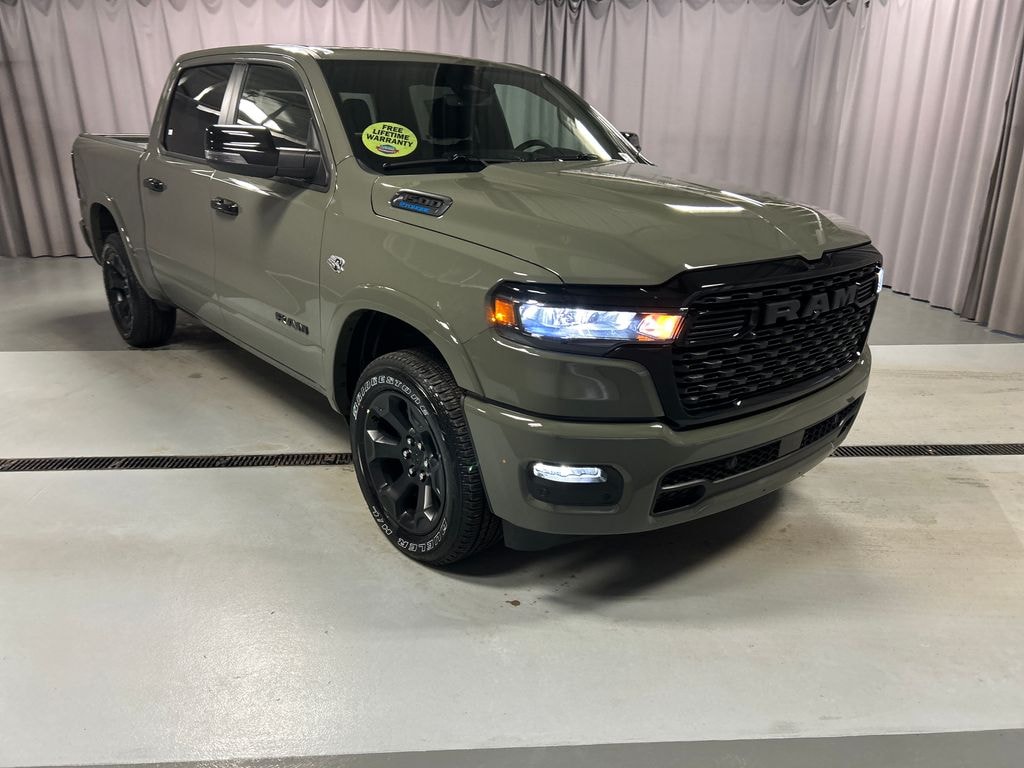 INCLUDES LIFETIME POWERTRAIN WARRANTY, 115V Auxiliary Power Outlet, 115V Auxiliary Rear Power Outlet, 12" Touchscreen Display, 2nd Row in Floor Storage Bins, 3 Rear Seat Head Restraints, 4 Way Front Headrests, 400W Inverter, 4G LTE Wi-Fi Hot Spot, 9 Amplified Speakers with Subwoofer, Accent Color Door Handles, Accent Color Premium Power Mirrors, Accent Color Tailgate Handle, Air Conditioning ATC with Dual Zone Control, Anti-Spin Differential Rear Axle, Apple CarPlay, Auto Power-Folding Mirrors, Auto-Dimming Exterior Driver Mirror, Auto-Dimming Rear-View Mirror, Big Horn Level 2 Equipment Group, Black Exterior Mirrors, Black Exterior Truck Badging, Black Headlamp Bezels, Black Interior Accents, Black Painted Exterior Mirrors Caps, Black Premium Power Mirrors, Black Tail Lamp Bezels, Body Color Fender Flares, Body Color Front Bumper, Body Color Rear Bumper with Step Pads, Bucket Seats, Center Console Parts Module, Cluster 7.0" TFT Color Display, Configurable Drive Mode, Connected Travel and Traffic Services, Connectivity - US/Canada, Convex Wide-Angle Exterior Mirror Insert, Deluxe Cloth Bucket Seats, Disassociated Touchscreen Display, Dual Exhaust with Black Tips, Exterior Mirrors Courtesy Lamps, Exterior Mirrors with Heating Element, Exterior Mirrors with Supplemental Signals, Front Seat Back Map Pockets, Full Length Floor Console, Global Telematics Box Module, Glove Box Lamp, Google Android Auto, GPS Antenna Input, GPS Navigation, Grille Black Surround Black Mesh, HD Radio, Heated Front Seats, Heated Steering Wheel, Integrated Center Stack Radio, Integrated Voice Command with Bluetooth, Leather Wrapped Steering Wheel, LED Dome Lamp with on/Off Switch, LED Footwell Lighting, Manual Adjust 4-Way Front Passenger Seat, Media Hub with 2 Charge Only USBs, Night Edition, Overhead LED Lamps, Power 2-Way Driver Lumbar Adjust, Power Adjust 8-Way Driver Seat, Power Adjustable Pedals, Premium Overhead Console, Quick Order Package 27Z Big Horn, Radio: Uconnect 5 Navigation with 12.0" Display, RAM Grille Badge - Black, Rear 60/40 Folding Seat, Rear Center Armrest, Rear Power Sliding Window, Rear Window Defroster, Remote Tailgate Release, Security Alarm, SiriusXM Radio Service, SiriusXM with 360L, Steering Wheel Mounted Audio Controls, Sun Vi Price includes: $3500 - 2026 National Retail Consumer Cash . Exp. 03/02/2026 $500 - 2026 Great Lakes BC Truck Month Bonus Cash . Exp