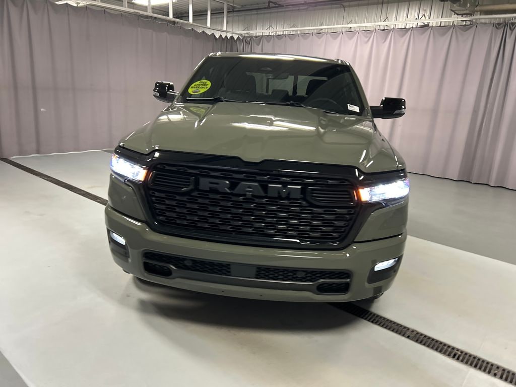 INCLUDES LIFETIME POWERTRAIN WARRANTY, 115V Auxiliary Power Outlet, 115V Auxiliary Rear Power Outlet, 12" Touchscreen Display, 2nd Row in Floor Storage Bins, 3 Rear Seat Head Restraints, 4 Way Front Headrests, 400W Inverter, 4G LTE Wi-Fi Hot Spot, 9 Amplified Speakers with Subwoofer, ABS brakes, Accent Color Door Handles, Accent Color Premium Power Mirrors, Accent Color Tailgate Handle, Active Cruise Control, Air Conditioning ATC with Dual Zone Control, Alloy wheels, Anti-Spin Differential Rear Axle, Apple CarPlay, Auto Power-Folding Mirrors, Auto-Dimming Exterior Driver Mirror, Auto-Dimming Rear-View Mirror, Big Horn Level 2 Equipment Group, Black Exterior Mirrors, Black Exterior Truck Badging, Black Headlamp Bezels, Black Interior Accents, Black Painted Exterior Mirrors Caps, Black Premium Power Mirrors, Black Tail Lamp Bezels, Body Color Fender Flares, Body Color Front Bumper, Body Color Rear Bumper with Step Pads, Bucket Seats, Center Console Parts Module, Cluster 7.0" TFT Color Display, Compass, Configurable Drive Mode, Connected Travel and Traffic Services, Connectivity - US/Canada, Convex Wide-Angle Exterior Mirror Insert, Deluxe Cloth Bucket Seats, Disassociated Touchscreen Display, Dual Exhaust with Black Tips, Electronic Stability Control, Exterior Mirrors Courtesy Lamps, Exterior Mirrors with Heating Element, Exterior Mirrors with Supplemental Signals, Front Seat Back Map Pockets, Full Length Floor Console, Global Telematics Box Module, Glove Box Lamp, Google Android Auto, GPS Antenna Input, GPS Navigation, Grille Black Surround Black Mesh, HD Radio, Heated door mirrors, Heated Front Seats, Heated Steering Wheel, Illuminated entry, Integrated Center Stack Radio, Integrated Voice Command with Bluetooth, Leather Wrapped Steering Wheel, LED Dome Lamp with on/Off Switch, LED Footwell Lighting, Low tire pressure warning, Manual Adjust 4-Way Front Passenger Seat, Manual Folding Exterior Mirrors, Media Hub with 2 Charge Only USBs, Night Edition, Overhead LED Lamps, ParkView Rear Back-Up Camera, Power 2-Way Driver Lumbar Adjust, Power Adjust 8-Way Driver Seat, Power Adjustable Pedals, Premium Overhead Console, Quick Order Package 27Z Big Horn, Radio: Uconnect 5 Navigation with 12.0" Display, RAM Grille Badge - Black, Rear 60/40 Folding Seat, Rear Center Armrest, Rear Power Sliding Window, Rear Window Defr Price includes: $3500 - 2026 National Retail Bonus Cash . Exp
