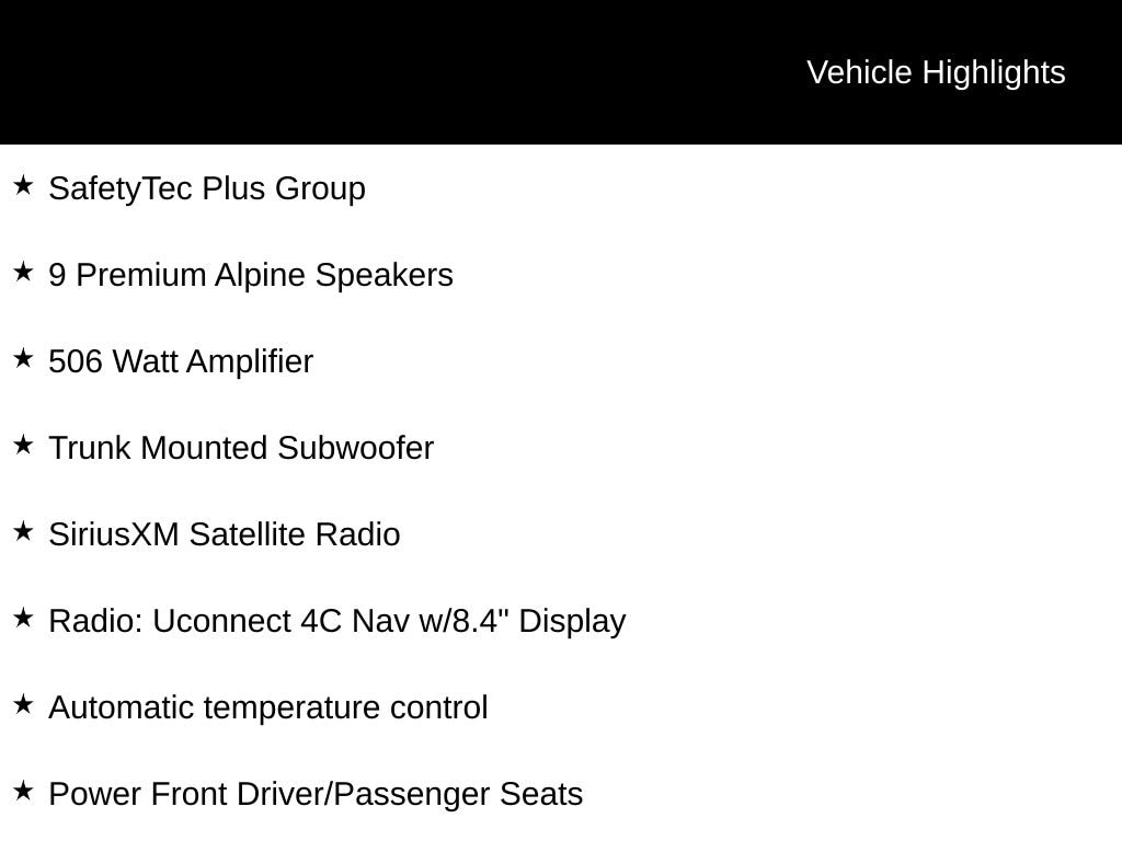 Priced below KBB Fair Purchase Price! INCLUDES LIFETIME POWERTRAIN WARRANTY, REMAINDER OF FACTORY WARRANTY, CLEAN VEHICLE HISTORY...NO ACCIDENTS!, ONE OWNER, AWD, 506 Watt Amplifier, 8.4" Touchscreen Display Radio, 9 Premium Alpine Speakers, Adaptive Cruise Control w/Stop, Advanced Brake Assist, Apple CarPlay, Automatic temperature control, Blind Spot & Cross Path Detection, Comfort Group, Dual-Pane Panoramic Sunroof, Full Speed FWD Collision Warn Plus, Google Android Auto, Heated Front Seats, Heated Second Row Seats, Heated Steering Wheel, Integrated Voice Command w/Bluetooth, Lane Departure Warning Plus, Leather Trimmed Bucket Seats, Leather w/Perforated Insert Bucket Seats, Navigation System, ParkView Rear Back-Up Camera, Popular Equipment Group, Power Front Driver/Passenger Seats, Radio: Uconnect 4C Nav w/8.4" Display, Rain Sensitive Windshield Wipers, Rear Armrest w/Cupholder Seat, SafetyTec Plus Group, SiriusXM Satellite Radio, Split folding rear seat, Trunk Mounted Subwoofer, Ventilated Front Seats, Wheels: 19" x 7.5" Black Noise Painted.
