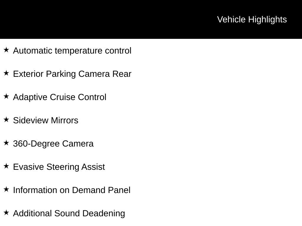 INCLUDES LIFETIME POWERTRAIN WARRANTY, REMAINDER OF FACTORY WARRANTY, CLEAN VEHICLE HISTORY...NO ACCIDENTS!, ONE OWNER, 4WD, 10 Speakers w/Subwoofer, 18" Bright Machined Aluminum Wheels, 360-Degree Camera, Adaptive Cruise Control, Additional Sound Deadening, Automatic temperature control, Equipment Group 314A High/Lux Package, Evasive Steering Assist, Exterior Parking Camera Rear, Heated front seats, Heated Steering Wheel, Information on Demand Panel, Navigation system: Connected Navigation, Radio: B&O Sound System by Bang & Olufsen, Sideview Mirrors, Wireless Charging Pad.
