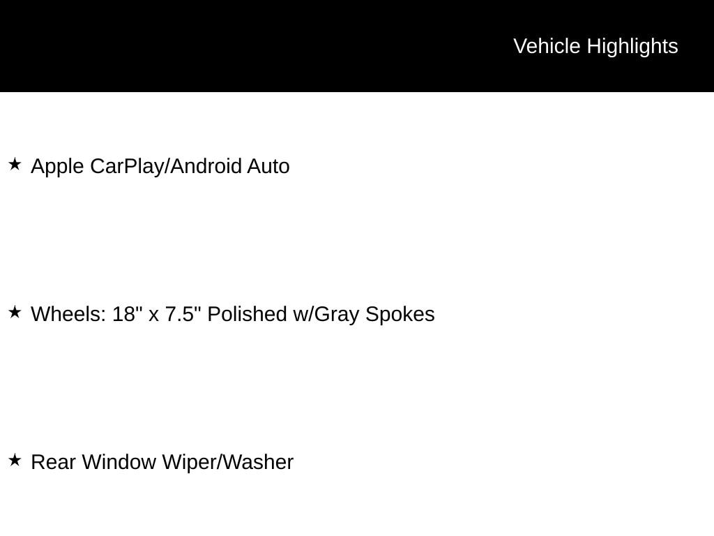 • Wheels: 18" x 7.5" Polished w/Gray Spokes