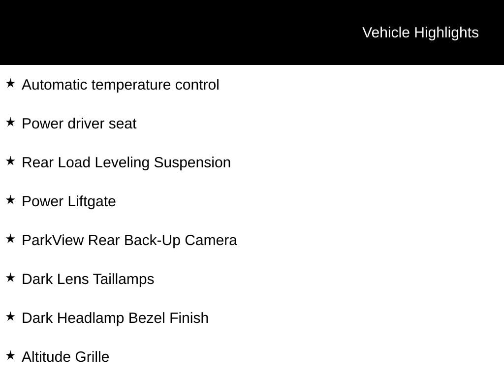 INCLUDES WARRANTY, CLEAN VEHICLE HISTORY...NO ACCIDENTS!, ONE OWNER, LOCAL TRADE, 4WD, 7 & 4 Pin Wiring Harness, 8.4" Touchscreen Display Radio, Altitude Appearance Package, Altitude Grille, Apple CarPlay/Android Auto, Automatic temperature control, Black Roof Molding, Body Color Claddings, Class IV Receiver Hitch, Dark Headlamp Bezel Finish, Dark Lens Taillamps, Heated Front Seats, Instrument Cluster w/Off-Road Disp. Pages, Integrated Voice Command w/Bluetooth, Navigation System, ParkView Rear Back-Up Camera, Power driver seat, Power Liftgate, Radio: Uconnect 4C Nav w/8.4" Display, Rear Load Leveling Suspension, Trailer Tow Group IV, Wheels: 20" x 8.0" Gloss Black Aluminum.