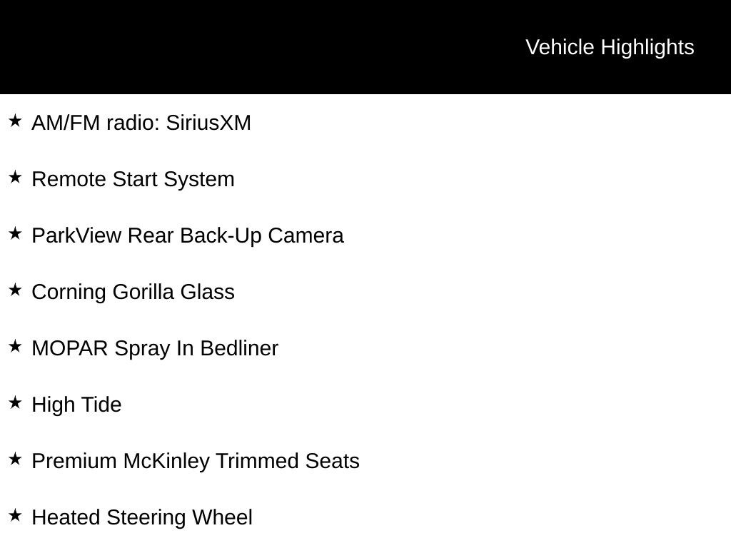 INCLUDES LIFETIME POWERTRAIN WARRANTY, REMAINDER OF FACTORY WARRANTY, CLEAN VEHICLE HISTORY...NO ACCIDENTS!, ONE OWNER, 4WD, AM/FM radio: SiriusXM, Body Color 3-Piece Hard Top, Convenience Group, Corning Gorilla Glass, Heated Front Seats, Heated Steering Wheel, High Tide, MOPAR Spray In Bedliner, ParkView Rear Back-Up Camera, Power Adjust 8-Way Driver Seat, Power Adjust 8-Way Front Passenger Seat, Premium McKinley Trimmed Seats, Radio: Uconnect 5 w/12.3" Display, Rear Sliding Window, Remote Start System, Trailer Hitch Zoom, Trailer Tow & Aux Switch Group, Wheels: 17" x 7.5" Painted Black.