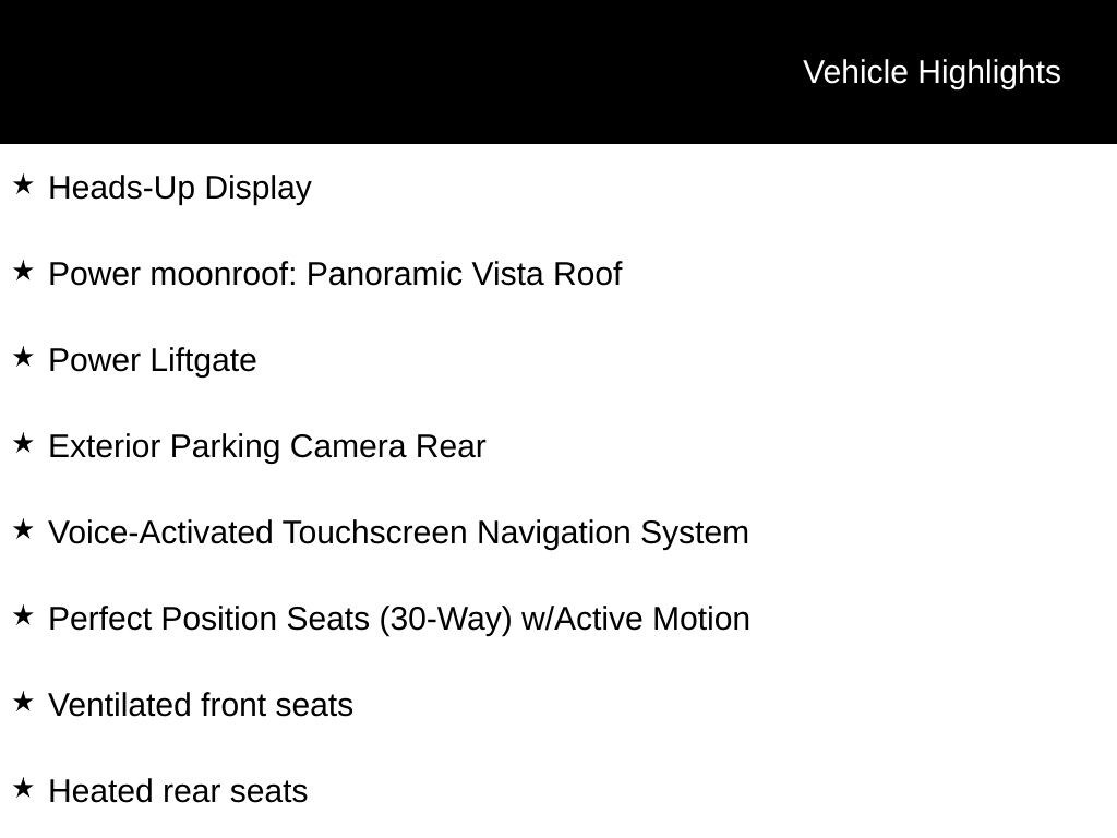 INCLUDES WARRANTY, 4WD, Automatic temperature control, Equipment Group 208A Reserve, Exterior Parking Camera Rear, Heads-Up Display, Heated front seats, Heated rear seats, Luxury Package, Navigation System, Perfect Position Seats (30-Way) w/Active Motion, Power Liftgate, Power moonroof: Panoramic Vista Roof, Radio: Revel AM/FM/HD/MP3 Audio System, Revel Ultima Audio System w/20-Speakers, SiriusXM Radio, Ventilated front seats, Voice-Activated Touchscreen Navigation System, Wheels: 22" 12-Spoke Ultra Bright Machined Alum.