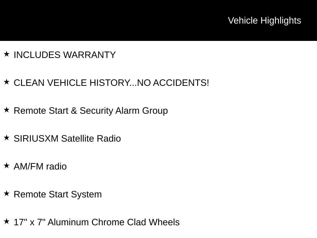 • CLEAN VEHICLE HISTORY...NO ACCIDENTS!